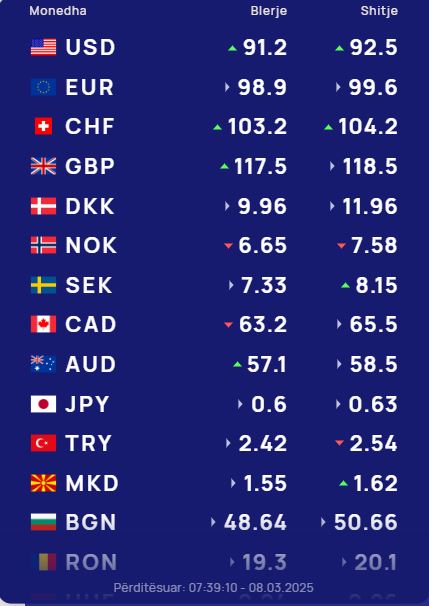 Ndërsa paundi britanik blihet me 117.5 lekë dhe shitet me 118.5 lekë.