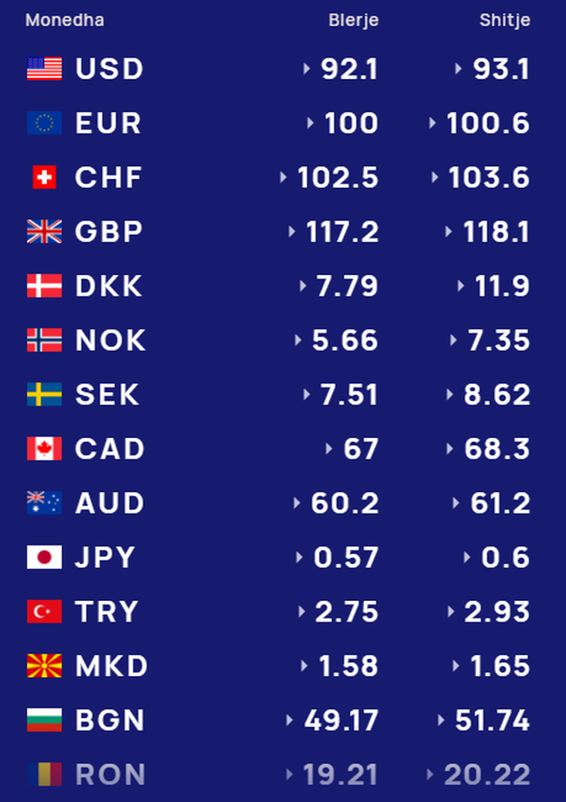 Më poshtë, po sjellim të dhënat e këmbimin valutor, për të gjitha monedhat e huaja: