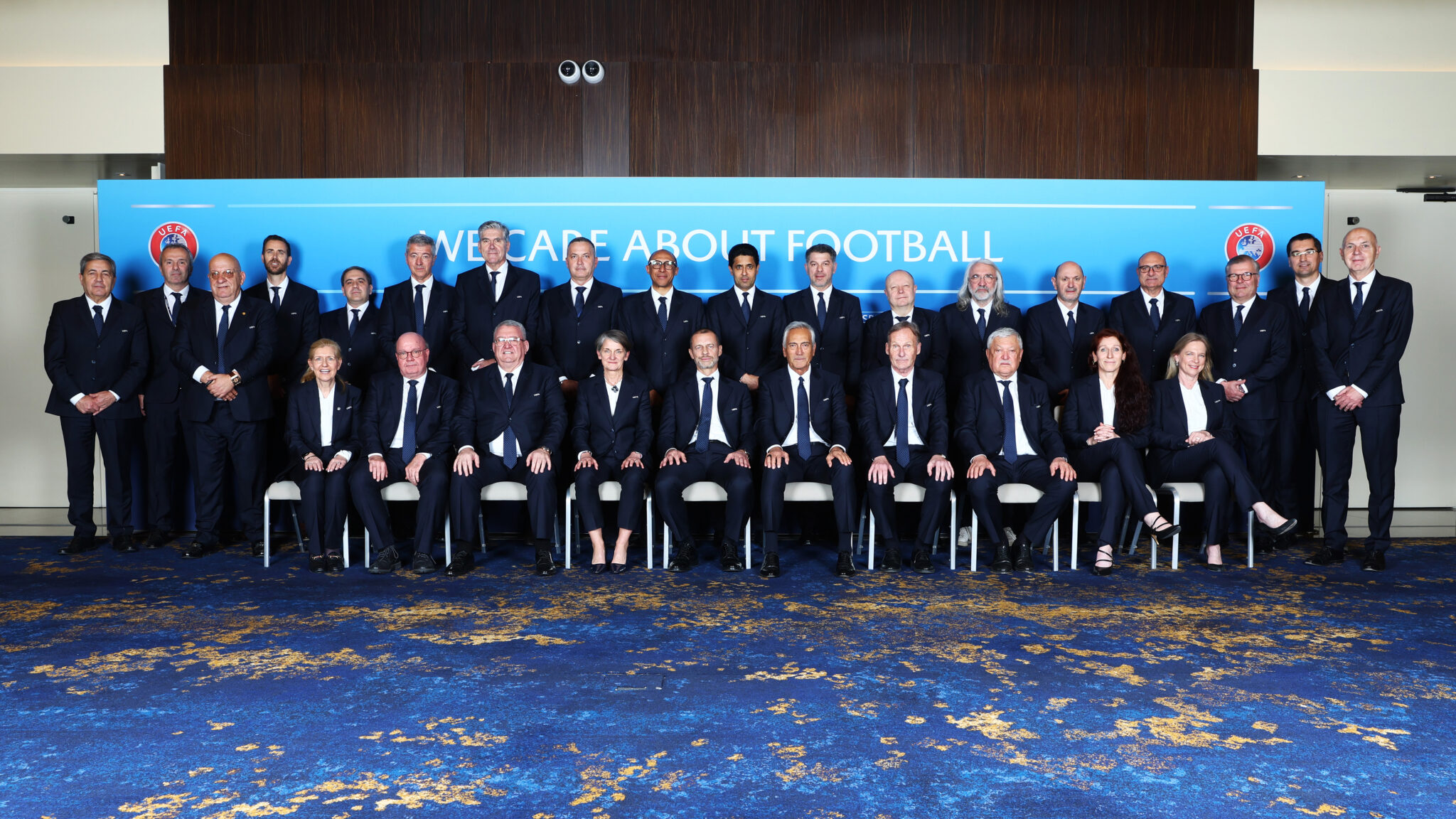 BELGRADE, SERBIA - APRIL 03: Group photo during the 49th Ordinary UEFA Congress at Sava Centar on April 03, 2025 in Belgrade, Serbia. (Photo by Francesco Scaccianoce - UEFA/UEFA via Getty Images)