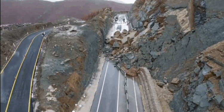 Siç edhe mund ta shihni mëposhtë, segmenti i sapohapur paraqitet i shkatërruar në disa pjesë: masa gjigante shkëmbore të shembura mbi asfalt, barriera mbrojtëse të shtrembëruara dhe zona të tëra të deformuara brenda pak sekondash.