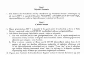 Sipas kontratës së shitjes, Avdalli përfitoi 500 mijë euro menjëherë me nënshkrimin e kontratës, ndërsa pjesën tjetër prej 12 milionë eurosh do ta marrë në natyrë me sipërfaqe ndërtimore.