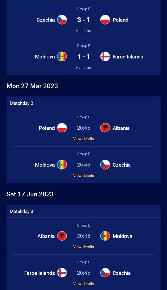 Në të njëjtën ditë, po më 27 mars do të luaj edhe Çekia me Ishujt Faroe në transfertë, një ndeshje e thjeshtë për ta nisur nga ajo ç’ka tregoi sot, por edhe nga niveli i dy skuadrave, pasi ishullorët janë edhe skuadra më e dobët e grupit në bazë të statistikave.