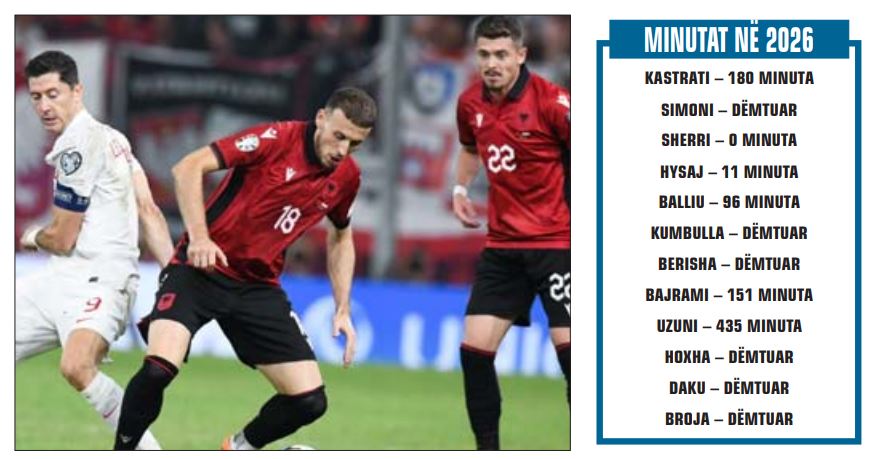 Nga 13 ndeshjet e zhvilluara në vitin 2026, Hysaj ka marrë në total vetëm 11 minuta lojë duke qenë kjo një shifër minutash thuajse e papërfillshme kur sheh kundërshtarin që Shqipëria do të ketë përballë. Në të njëjtat kushte në atë pozicion, është edhe mbrojtësi tjetër Ivan Balliu. Mbrojtësi i Vajekanos që aktivizohet në La Liga, ka marrë vetm 96 minuta në 11 ndeshjet e luajtura të vitit 2026 dhe duket se e ka humbur vendin e tij në formacion por edhe si alternativë. Shpesh herë, mbrojtësi ka shkaktuar edhe polemika në kampionat për shkak të sjelljeve që ka bërë pas ndërrimeve të mundshme. Situatë të ccuditshme po kalon edhe Mario Mitaj me Al Itihadin në Arabi.