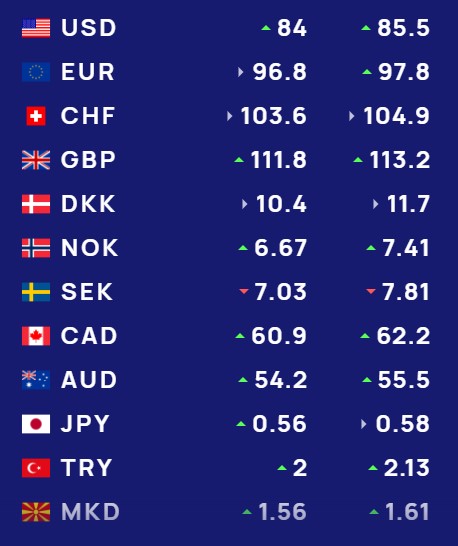 Kursi i këmbimit, me sa shiten e blihen valutat e huaja