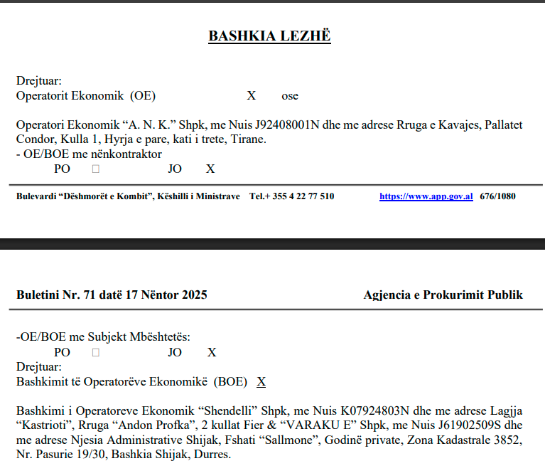 Edhe Bashkimi i Operatoreve Ekonomik “Shendelli” Shpk, & “VARAKU E” Shpk, i përfaqësuar nga Yzedin Bozho, u ftua për të lidhur marrëveshjen, megjithëse kishte ofertë të lartë 281,004,899 Lek pa Tvsh.