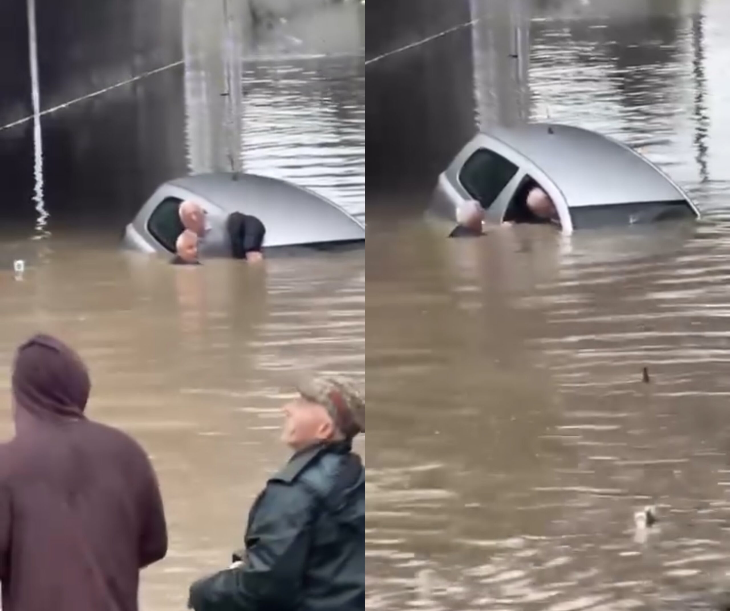 Nga pamjet e mbërritura mund të shihni se si një mjet fundoset plotësisht në ujë ndërkohë që qytetarët që po udhëtonin me të mezi arrijnë të dalin.