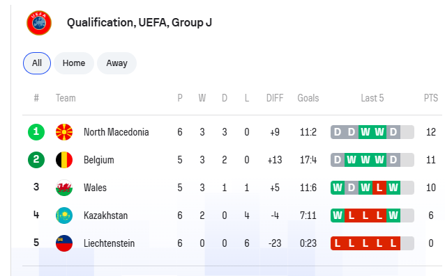 Pas këtij barazimi, Maqedonia e Veriut mbetet në krye të grupit me 12 pikë, e ndjekur nga Belgjika me 11 dhe Uellsi me 10 pikë, që ka një ndeshje më pak. Sfida e radhës për kuqeverdhët do të jetë të hënën, në Shkup, ndaj Kazakistanit, ku do të kërkojnë të mbajnë ritmin e jashtëzakonshëm drejt ëndrrës së Botërorit 2026.
