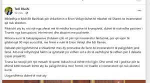 Sipas tij, qytetarët shqiptarë po vazhdojnë të vidhen çdo ditë përmes pagesave të majme që buxheti i shtetit i bën një inceneratori “fantazmë”, për të cilin paguhen rreth 90 mijë euro në ditë, pa pasur një objekt funksional që i shërben realisht qytetit.