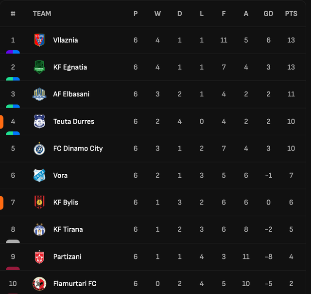 Mbyllen ndeshjet e javës së 6-të të Superiores, ja renditja e ekipeve