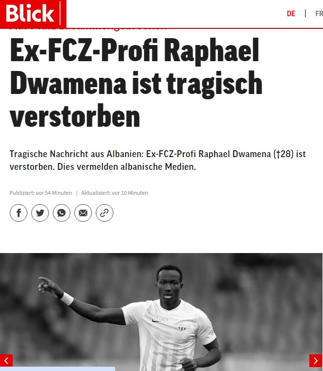 “Blick”: Ish futbollisti i Zyrihut Rafael Duamena vdes në mënyrë tragjike.