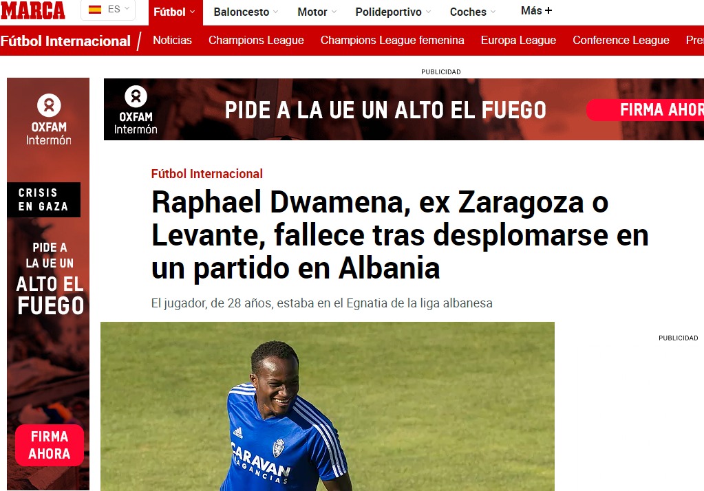 “Marca”: Rafael Duamena, ish-Zaragoza dhe Levante, humb jetën pasi pëson kolaps në një ndeshje në Shqipëri.