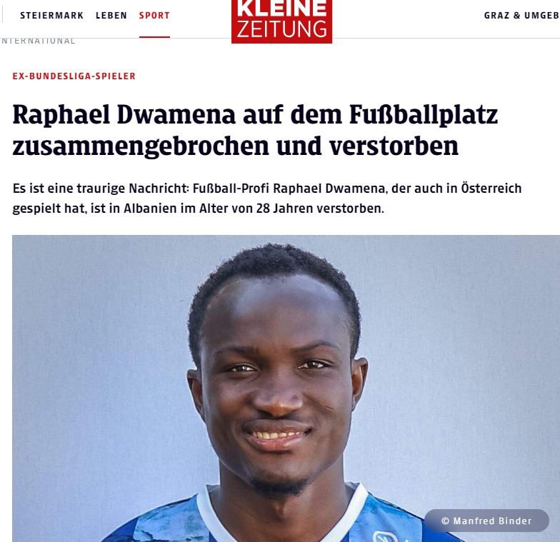 “Kleine Zeitung”: Rafael Duamena humb jetën pas kolapsit në fushë.