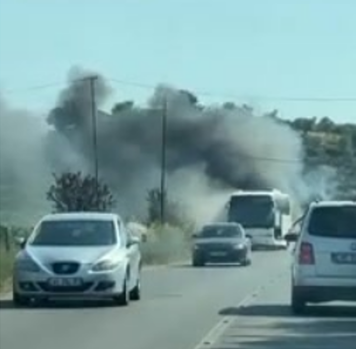Një autobus turistësh është përfshirë nga flakët ditën e sotme në aksin rrugor Belsh-Elbasan.