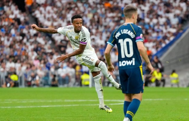 Me Xabo Alonson që shënon thjesht një start perfekt.  Real Madridi ka kaluar në avantazh falë një goli spektakolar të Éder Militão-s në minutën e 20-të të sfidës ndaj Espanyolit në “Santiago Bernabéu”.