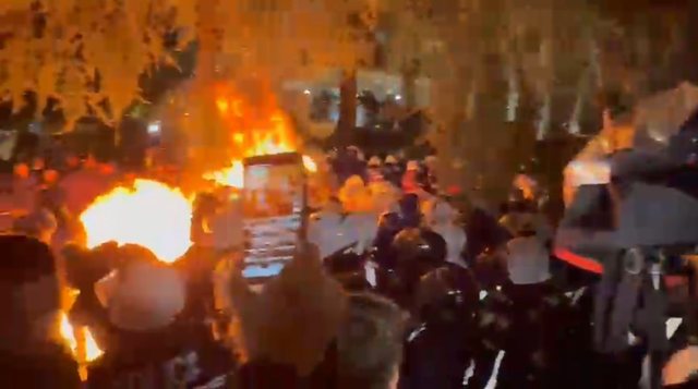 Nga hedhja e molotovëve efektivët pësojnë djegie në trup. Ky eshte momenti kur molotovi plas mes protestuesve dhe policisë. Rreth 6 punonjës policie u dëmtuan mbrëmjen e sotme gjatë protestës së opozitës, e organizuar fillimisht tek sheshi para Kryeministrisë e më pas tek Kuvendi.