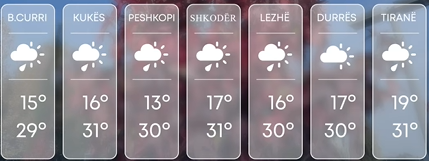 Moti parashikohet me kthjellime e alternime vranësirash mesatare deri të dendura kryesisht nga orët e mesditës e pasdite. Sipas SHMU-së, vranësirat do të shoqërohen me reshje shiu me intensitet të ulët (të karakterit lokal) në pjesën më të madhe të territorit ndërsa në relievet malore në afate tepër të shkurtra kohore në formën e shtrëngatave.