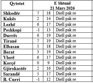 Moti parashikohet me kthjellime si dhe alternime vranësirash të cilat hera-herës priten të jenë deri mesatare, këto të fundit kryesisht pas orëve të mesditës në relievet malore.