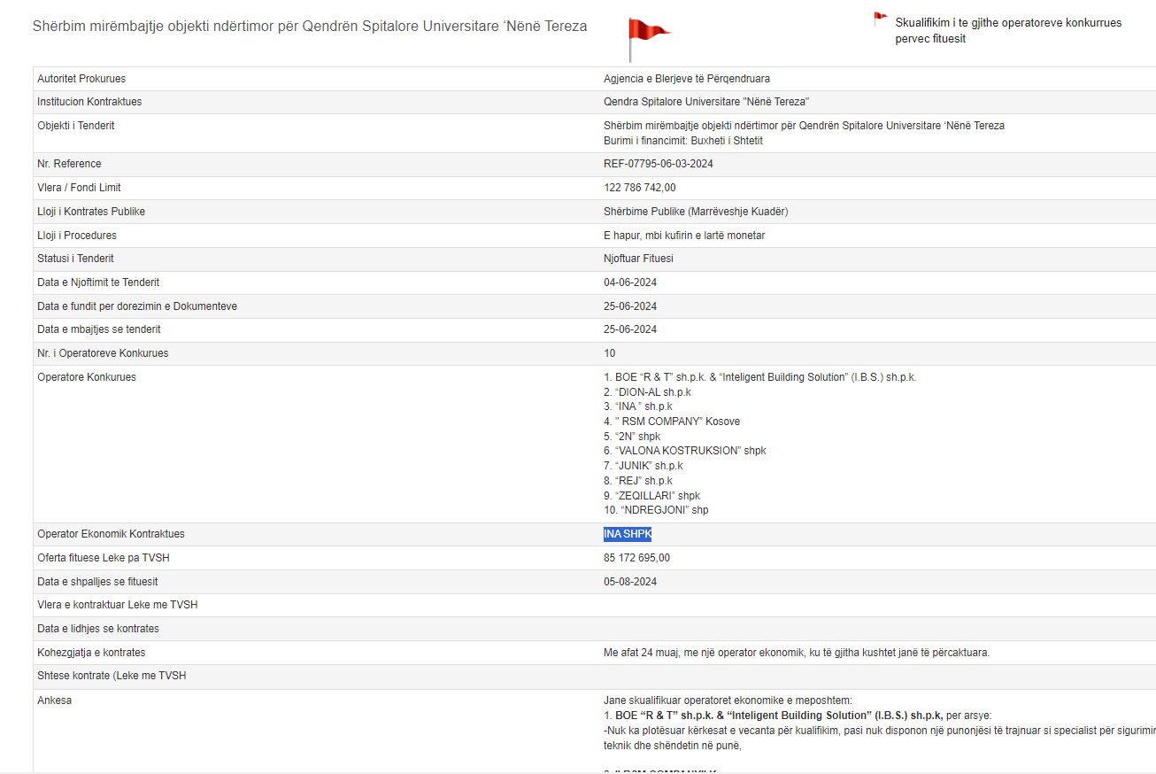 Ndërkaq, komisioni nuk ka bërë kurrfarë verfikimi mbi kapacitetin e kompanisë fituese dhe angazhimet aktuale me kontrata të tjera publike.