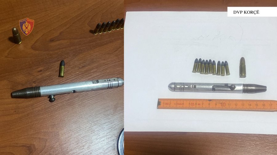 Strukturat e DVP Korçë, në bashkëpunim me shërbimet e Forcës së Posaçme “Shqiponja”, në bazë të informacioneve të siguruara në rrugë operative se një shtetas posedonte armë zjarri pa leje, organizuan punën dhe lokalizuan shtetasin e dyshuar, në një lokal në fshatin Podgorie, Maliq. Gjatë kontrollit fizik, shtetasit E. Xh. iu gjet një send i dyshuar pistoletë me fishekë, i ngjashëm me stilolapsin, i cili u sekuestrua në cilësinë e provës materiale.”