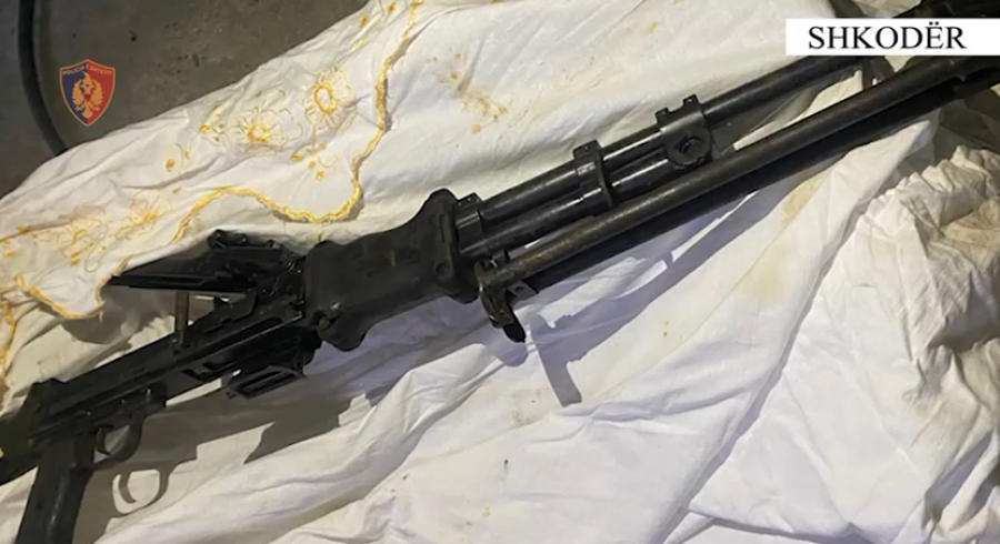 Gjenden në banesën e 19-vjeçarit dhe sekuestrohen, në cilësinë e provës materiale, një armë zjarri mitraloz i lehtë, municion luftarak, një sasi lënde narkotike kanabis dhe veshjet e përdorura gjatë vendosjes së zjarrit.