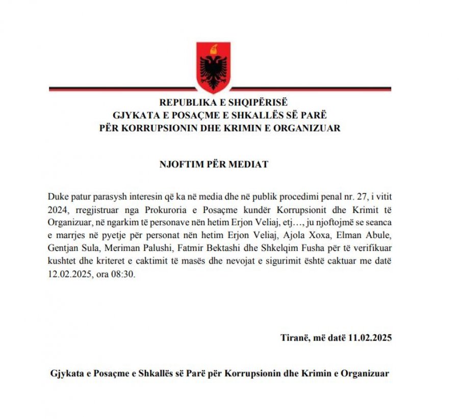 Mësohet se seanca do të zhvillohet nesër në orën 8:30 të mëngjesit.