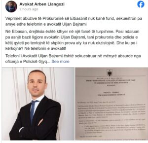 “Veprimet abuzive të Prokurorisë së Elbasanit nuk kanë fund. Sekuestrimi i telefonit të avokatit pa asnjë bazë ligjore është kthyer në një farsë të turpshme të drejtësisë. Kur nuk ka prova, prokuroria fillon të bëjë ‘gjueti shtrigash’ në telefonin e avokatit,” deklaron Llangozi.