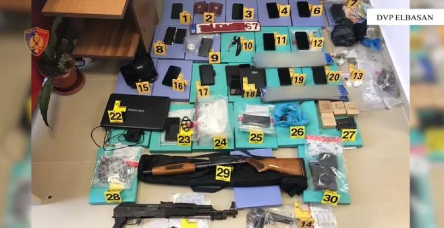 Gjatë operacionit janë sekuestruar sasi lënde narkotike kokainë dhe kanabis, armë zjarri (pistoletë, kallashnikov), armë gjahu dhe municion luftarak. Po ashtu janë konfiskuar laptopë, tabletë, DVR, targa automjetesh, shuma parash në euro, paund, dollarë, franga zvicerane dhe 24 celularë.