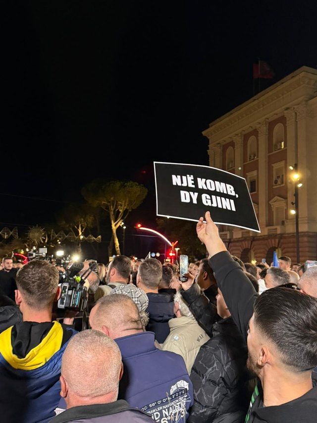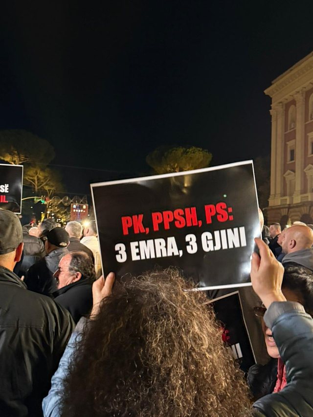 “Një komb dy gjini”, “PK, PPSH, PS: TRE EMRA, 3 GJINI”, “Pastor komunist ka vetëm në PS”, shkruhej në disa nga pankarat e protestuesve.