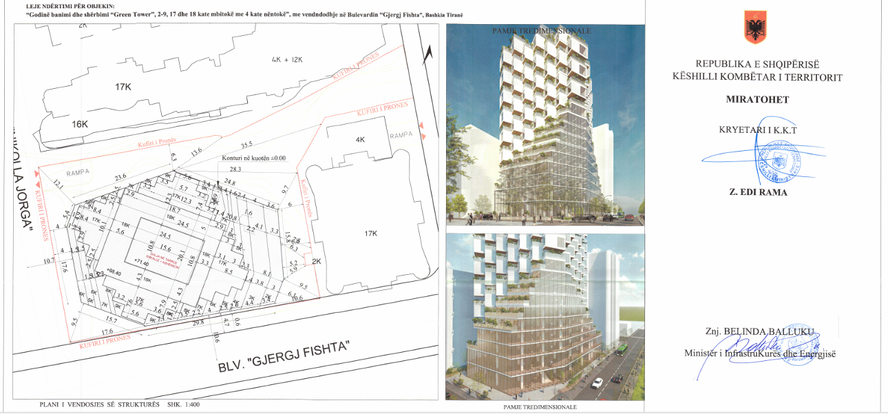 Një kompani e dyshimtë, me një pasqyrë financiare me zero të ardhura dhe zero shpenzime ka përfituar një leje ndërtimi në mes të verës së vitit të kaluar nga dora e vetë kryeministrit Edi Rama dhe më të besuarës së tij Belinda Balluku. Me 20 gusht 2024, Refki Peposhi mori një leje ndërtimi për një kullë në zemër të kryeqytetit me 18 kate mbi tokë e 3 nën tokë. Pas sigurimit të lejes sipas projektit me 3 kate nën dhe, ky ndërtim miratohet nga kreu i qeverisë me 4 kate parkingu poshtë tij. Lëvizje kjo që mund të jetë përshtatur me nevojat e qytetit, por ngjall dyshime të forta për falsifikim ose nevojën për një studim të ri të impaktit në mjedis dhe strukturës së themeleve.