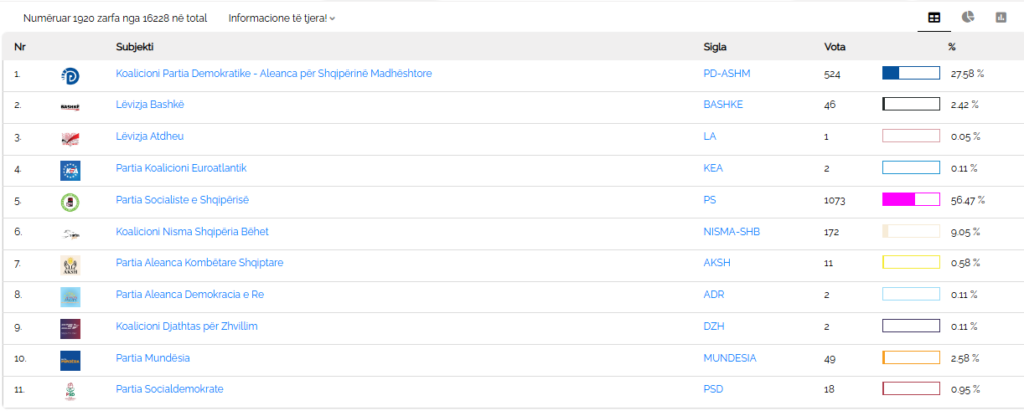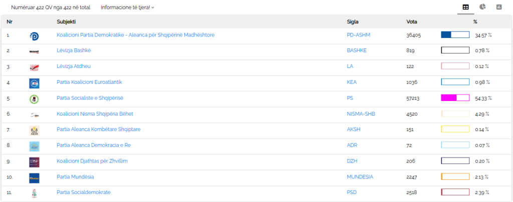 - Partia Aleanca Kombëtare Shqiptare – 0.14 % – 151 vota