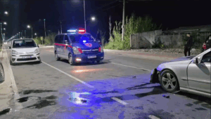 Nga informacionet paraprake mësohet se dy automjete, një “Mercedes Bent” dhe një “Toyota” janë përplasur me njëra-tjetra. Siç shihet dhe në pamjet e mëposhtme, pas përplasjes, automjeti “Toyota” ka përfunduar në një kanal jashtë rruge.