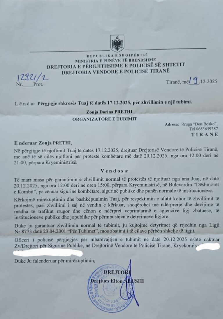 Kreu i Lëvizjes “Shqipëri Bëhet”, Adriatik Lapaj, ka ndarë në Facebook, shkresën nëpërmjet të së cilës tregon se protesta ka pasur leje. Sipas tij, shteti po sillet si organizatë banditë.