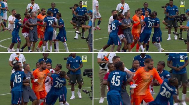 Momente tensioni u regjistruan menjëherë pas përfundimit të finales së Botërorit të Klubeve, mes Çelsit dhe PSG-së, ku blutë e Londrës triumfuan me rezultatin 3 me 0.