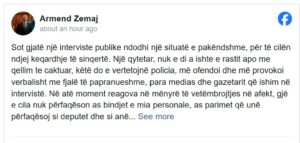 Sipas gazetarit Gashi, pas incidentit fizik mes Zemajt dhe qytetarit është lajmëruar policia dhe autoritetet kanë marrë pamjet e xhiruara nga kamerat.