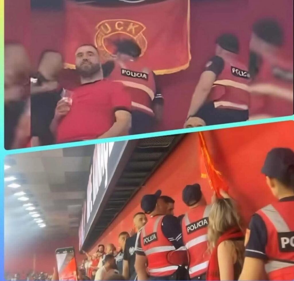 Një ngjarje shqetësuese ka ndodhur në stadiumin kombëtar Air Albania gjatë ndeshjes së shumëpritur Shqipëri–Serbi, ku Policia e Shtetit ka ndërhyrë për të ndaluar shfaqjen e flamurit të Ushtrisë Çlirimtare të Kosovës (UÇK) dhe ka larguar nga stadiumi edhe një tifoz që mbante veshur një fanellë me këtë simbol.