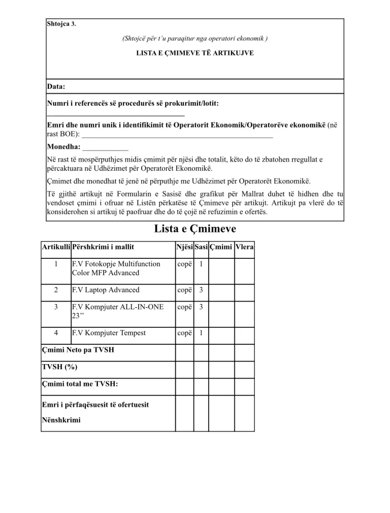 Në mungesë të transparencës për specifikimet teknike, publikimi zyrtar lë vetëm një përshkrim të përgjithshëm: “pajisje kompjuterike dhe furnizime” me kodin standard 30200000-1 sipas Fjalorit të Përbashkët të Prokurimit. Por nëse krahasohet me çmimet reale të tregut shqiptar për pajisje të kategorisë mesatare për zyrë, rezulton se:
