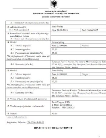 Por ministri Malaj ka qenë themelues dhe aksioner te kompania “PBM” shpk, e cila ka qenë e familjarëve të tij, të cilët në dhjetor 2025 kanë bërë kalimin në gjendje pasive të aksioneve.