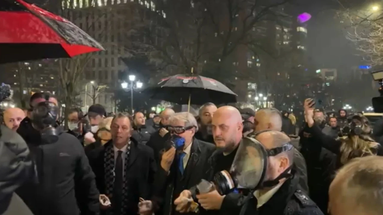Protestuesit hodhën molotovë drejt policisë, me këtë të fundit që iu kundërpërgjigj me gaz lotsjellës.