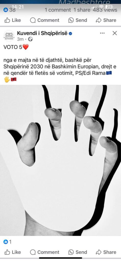 Kuvendi i Shqipërisë garanton opinionin publik se administrata dhe shërbimet, faqja dhe rrjetet sociale të tij nuk janë përfshirë dhe nuk do të përfshihen në asnjë mënyrë dhe në asnjë formë në fushatën e zgjedhjeve parlamentare.