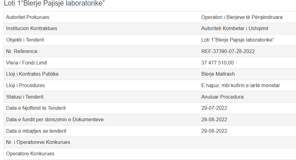 Tenderi dyshohet se është i paracaktuar nga drejtori për një kompani distributor që i ka stok në magazinë mallrat e laboratorit. Menjëherë janë ankuar në Komisionin e Prokurimit Publik dy biznese pjesëmarrëse në tender. Ato pretendojnë se drejtoi i ka qepur kriteret për fituesin që dihet tashmë se kush është.