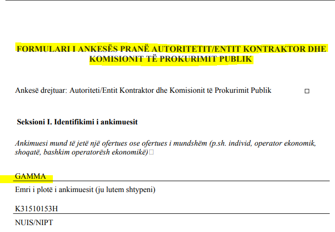 Ndërkohë, më 1 korrik 2025, në KPP ishte dërguar një tjetër ankesë për tenderin. Është kompania “Gama” shpk që ka paraqitur një formular ankese duke kërkuar modifikimin e dokumenteve të tenderit dhe zgjatjen e afatit të lëvrimit të mallit.