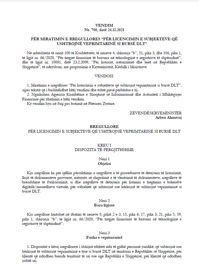 Në rregulloren e botuar në Fletore Zyrtare më 26 nëntor 2022, përcaktohet qartë të gjitha rregullat për një biznes apo një individ, nga marrja e licencës e deri tek dalja në treg si bursë digjitale.