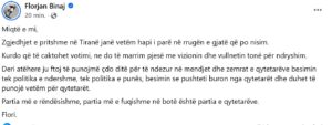 “Deri atëherë ju ftoj të punojmë çdo ditë për të ndezur në mendjet dhe zemrat e qytetarëve besimin tek politika e ndershme, tek politika e punës, besimin se pushteti buron nga qytetarët dhe duhet të punojë vetëm për qytetarët,” shkruan Binaj.