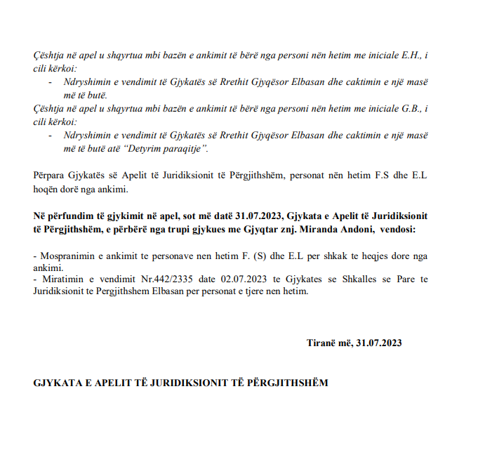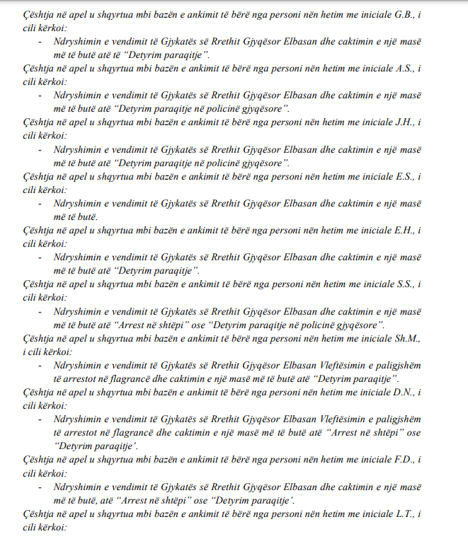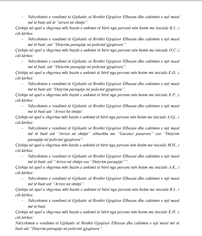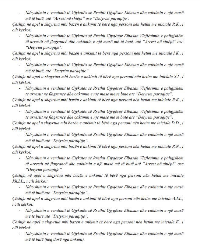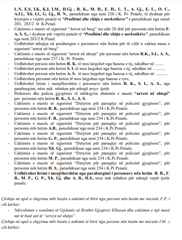 Apeli vendosi që 35 prej të arrestuarve do të qëndrojnë në burg, 3 të tjerë do të qëndrojnë në “arrest shtëpie”, ndërsa 7 të tjerë janë lënë në detyrim paraqitjeje.