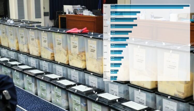 Në qarqet e tjera të mëdha Fier, Durrës dhe Elbasan, rënia ishte dyshifrore (shiko grafikun e mëposhtëm). Këto qarqe humbën së bashku mbi 70 000 votues.
