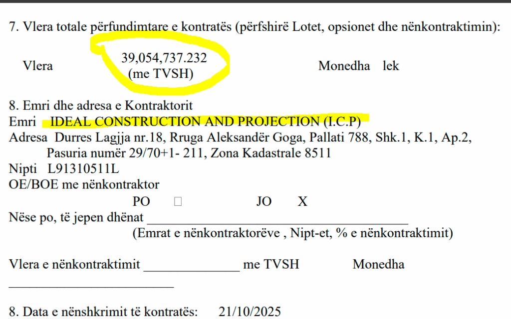Dhe nuk janë pak, por vlera totale përfundimtare e kontratës është 39,054,737.232 lekë.