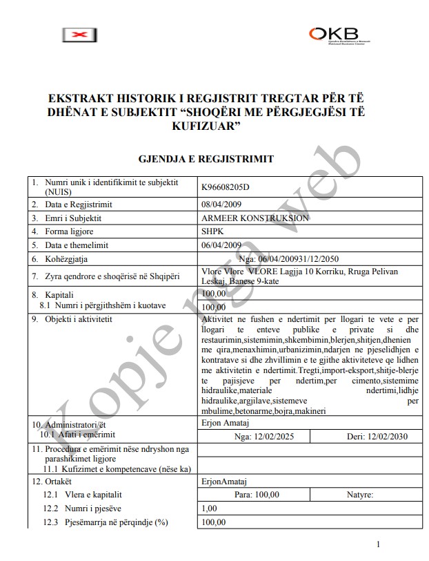 “ARMEER KONSTRUKSION”, një ndër zhvilluesit e pallatit, është në pronësi të Erjon Ahmataj, i cili ka qenë Drejtor i Urbanistikës në Bashkinë Vlorë, kur kjo e fundit drejtohej nga Dritan Leli.