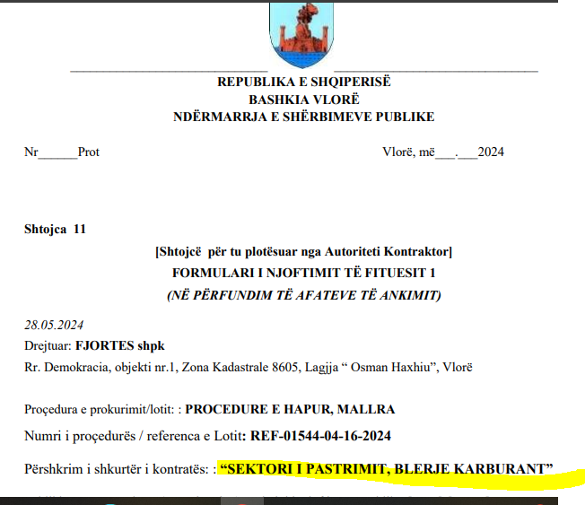Më vonë, në 14 qershor 2024, Fjortes mori nga Dredha kontratën 37 572 364,00 lekë me objekt “SEKTORI I PASTRIMIT, BLERJE KARBURANT”, Ndërmarrja e Shërbimeve Publike, Bashkia Vlorë”.