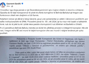 Në një koment ironik, Bardhi shtoi se Belinda Balluku, nëse do të udhëhiqte procesin e integrimit europian, do t’u tregonte edhe partnerëve të BE-së “si mund të bëjnë korrupsion dhe si ndahen tenderat për qoka pushteti.”