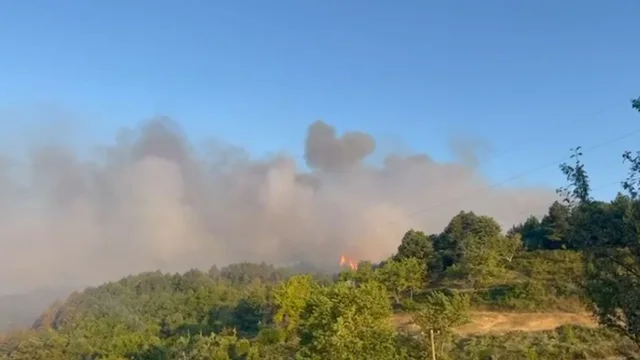 Zjarri që është përhapur në terren malor, ka djegur pisha e bimësi e ndryshme, ndërsa ndërhyrja nga toka është e vështirë.